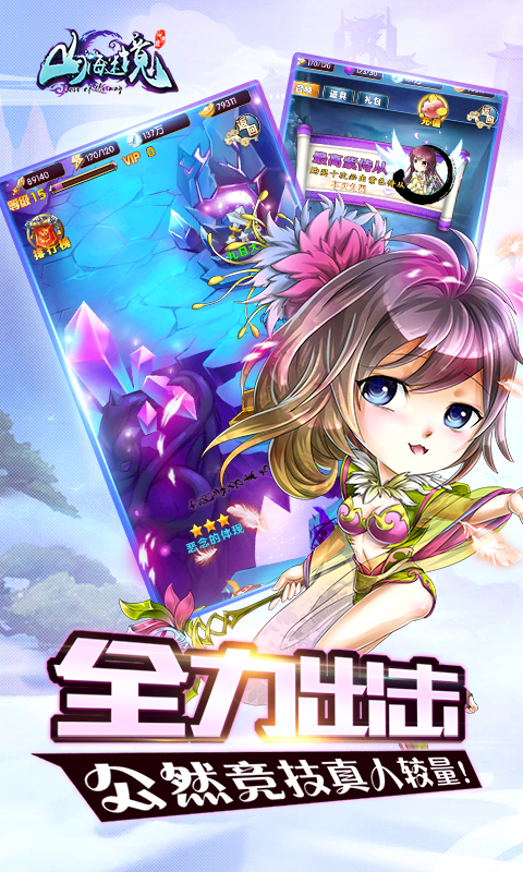 《山海迷境》极致华丽的战斗界面,融入精心打造的山海经神怪系统,实现多种组合。丰富的神怪设定,通过神怪进阶等玩法,获得更多的战力、特殊属性,体验丰富阵容组合带来操作享受。挑战性质的追星赶月玩法,为玩家提供竞争和展现实力的平台。福利活动、精英副本、竞技场、等,玩家交互丰富多彩。