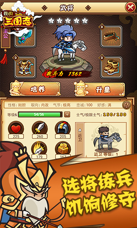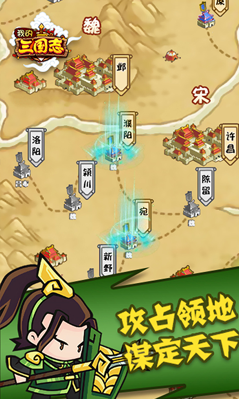 《我的三国志》是一款Q版风格的2D策略类手游。玩家穿越到三国时代,作为一名小城主发展培养自己的势力,攻城掠地,收服名将,最终统一全国。游戏战斗采用策略和即时相结合的方式,玩家在战斗前需要排兵布阵布置最佳阵型,在战斗中由程序自动演算进行即时战斗