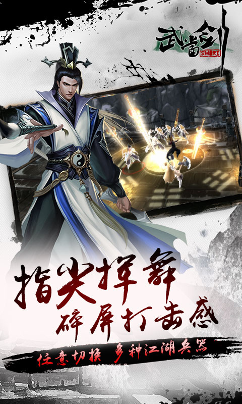 多武器自由切换,水墨国风武侠动作手游《武当剑》,实时PK、公平竞技、野外BOSS、结拜组队、多人副本、野外团战、帮派争夺、自由交易、神兵收集等10余种玩法,让你领略无缝衔接的爽快动作手游!