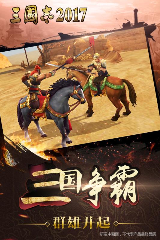 光荣特库摩正版授权,全程提供技术支持! 《三国志2017》致敬经典三十年,今朝战火重燃!游戏保留了原作大气磅礴的写实风格,置身于百万格的大地图上,你可以建设城池,招募、培养武将,体验割据一方的乐趣;也可以与其它玩家缔结联盟、打造军团,拓展版图,完成一统汉室中原之伟业。再现SLG烧脑火拼的盛况,让你从此告别单枪匹马,体验万人国战、沙盘争霸的劲爽!