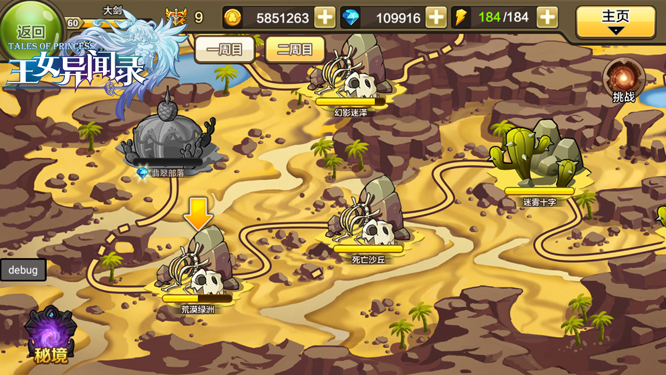 转眼炎热的夏天已经过去,凉爽的秋天悄悄来临。爱丽丝等一行人探索了菲瑞特尔大陆的各个角落,收获颇丰,现在她们来到了著名的绿洲蜃楼。这里是死亡的代名词,但也是冒险家的天堂,神秘的部落,危险的死亡之丘,充满白骨的洞窟...在《王女异闻录》中,玩家们随时可以挑战秘境,获取丰厚的奖励。其实不仅仅是绿洲蜃楼,在大陆的其他地方都存在秘境。只是这个时候,勇者和王女等人按照线索来到这片埋骨之地,等待她们的会是什么挑战呢?玩家进入游戏后选择冒险,会看到菲瑞特尔大陆的整个世界面貌。选择进入绿洲蜃楼,你便可以看到一座座待你探索的沙丘。站在绿洲蜃楼的入口,继续前进的话将要面对的是一望无际荒漠。在危机四伏的荒漠中,秘境随处可见。当玩家选择进入一个秘境开始探索之前,可以参考面板所示的精英怪属性,来搭配合适的王女以及骑士。在《王女异闻录》中,非常推荐使用灰姑娘,因为她的奥义技能能抵消所有飞行中的敌方武器,当敌方快速投掷大量武器时,马上使用奥义能起到很好的效果。在勇士们击败守卫在秘境中的妖精之后,可以获得丰厚的奖励,有用于核心符石的进阶材料,也有骑士们热衷的喜好品等等。如果你击败了敌人还可以对其进行扫荡,在《王女异闻录》贴心的设置中,勇士们可以选择进行扫荡1次或者10次,以此可以更快的收集想要的材料。随着王女们的脚步,通过了一周目试炼,勇士还可以选择二周目,难度越大,获得的奖励越珍贵哦。勇士你准备好了吗?让我们出发吧!更多好玩的手游尽在逗游!