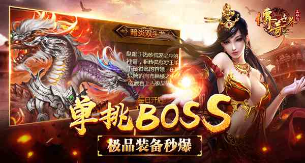 纵使版本更迭,屠龙刀不复昔日荣光,仍是玩家最大的追求之一。哆可梦旗下平台9187《传奇世界正版H5》的BOSS大殿就能掉落彰显玩家身份的屠龙刀、倚天剑等传说中的神器,还有更多高级的橙装。在这里,你将会得到你最喜欢的装备。个人BOSS 单刷极品神装个人BOSS是哆可梦旗下平台9187《传奇世界正版H5》的BOSS大殿的第一个分支,只要属于个人的挑战,真正意义上的单挑BOSS,怒刷装备。从角色10级到九转,玩家每一个等级阶段都会有相对应的BOSS挑战,玩家只要击败该BOSS就有机会掉传说级别的装备,具体还得看脸。很多老玩家习惯了单挑BOSS用来检验自己的战斗力和微操,这样能够增强自己的综合实力,以便在沙城争霸战中有更大的存活资本。毫无疑问,个人BOSS的挑战给玩家们提供锻炼自己的机会,而且还能掉落战力加成强大的装备,一举两得,何乐而不为呢?BOSS大殿 挑战实力至上哆可梦旗下平台9187《传奇世界正版H5》的BOSS大殿共分五层,每层都有5个BOSS守关,击败他们后掉落的物品有装备,强化石和面具碎片、主宰碎片等材料,跟个人BOSS不同的是,玩家们可以进入一起抢夺BOSS。为了丰富的掉落,难免会发生一场热血激情的PK,谁的战力高,操作强,谁就能抢得到BOSS!BOSS大殿的规则比较简单,角色每天都有100点体力,进入BOSS大殿5分钟内消耗10点体力,然后每分钟小号1点体力。也就是玩家每天都可以在里面待上95分钟。这个时间段里,玩家到底能刷多少装备和材料就看运气与实力了!值得一提的是,BOSS掉落的归属是给BOSS最后一击者获得,其他玩家可以在10秒后拾取!因此想要抢夺掉落,那么必须要最快解决掉落归属者!世界BOSS 引发热血帮战哆可梦旗下平台9187《传奇世界正版H5》的世界BOSS是第三个分支,也是最重要的玩法分支,挑战机制采取限时制,每天中午12:30-13:00是暗炎双头龙的挑战时间,晚上21:30-22:00是天之翡翠骨龙的挑战时间。世界BOSS的奖励分别有主宰晶石、金刚石、强化石、还有金币,具体要看玩家的伤害贡献,伤害越高,奖励的数额就越大!世界BOSS是全服性的活动,由于掉落可观,奖励丰富,是以每逢活动时间都会涌入大批的玩家。有人的地方就有江湖,有江湖的地方就有的斗争!在击杀世界BOSS之前,各个行会的玩家都会心照不宣,齐心合力的打BOSS,祥和的画面。如果有掉落强力的装备,那么就一言不合拔刀相向,喋血厮杀,场面惊人,甚至乎比沙城争霸战有过之而无不及!因此,实力强大的行会一般都会在击杀世界BOSS后,选择清场!这时候就自求多福了!总而言之,哆可梦旗下平台9187《传奇世界正版H5》的BOSS挑战模式是多种多样,总有一款适合你的!特别是稀有的掉落,使无数玩家为之疯狂!你们还在等什么?赶紧来单挑BOSS,怒刷极品装备吧!更多好玩的手游尽在逗游!
