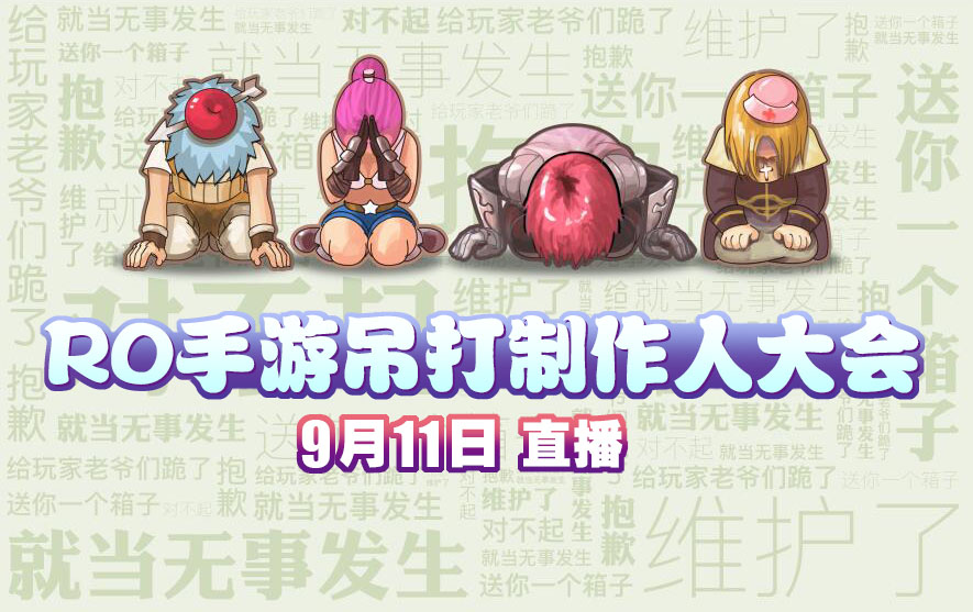 游戏太肝?卡片掉率太低?各种设定反人类?那谁…你是怎么当策划的来来来我保证不打死你!亲爱的冒险者们:报仇的机会来了!9月11日晚19:00,也就是EP 2.0更新的前夕,RO制作人老邢,以及大家非常熟悉的“不会射箭的猎人”,将会一同出现在RO官方直播间,给大家一个当面吊打的机会!机会难得,千万不可错过哦!“吃我一记,阿修罗霸凰拳……”冒险者们,赶紧准备好你们的枪支弹药,让制作人感受一下阿修罗霸凰拳的威力。哔哩哔哩直播房号:64434斗鱼直播房号:1634602我们相约在战场!不能现场观看直播的冒险者们,也不用担心,我们也将通过官方论坛同步互动本次直播活动。请牢记本次直播的官方论坛直播互动贴,地址为:https://bbs.xd.com/thread-3208251-1-1.html从即刻起至9月11日开播,大家有任何吐槽、建议和想问的问题,都可以去官方论坛直播互动贴进行留言。制作人老邢和不射猎在直播中会对大家集中留言反映的问题一一作答除了提问答疑之外,制作人老邢还将在直播中试玩EP2.0宠物情人,全新职业武僧、十字军,新的料理系统、宠物系统,还有美丽的新城市——艾尔帕兰。此外,不会射箭的猎人还将在直播现场上演一个“生死”测试!直播连开200个神秘箱子神秘箱子是假的?不会射箭的猎人,不射猎这次将会化身“谣言终结者”,当场连开200个神秘箱子,证明自己的清白!同时,不会射箭的猎人也下血本给大家准备了一份豪赌礼包,若是他能开到高价值装备,全服玩家将会获得一个神秘箱子,若是不能终结谣言,没有开到装备吐血给全服玩家发放两个神秘箱子。官方论坛抢楼大战我们在官方论坛还准备了“抢楼”大战活动,冒险者们在官方论坛直播互动贴下留言,我们将随机抽取不同的回复楼层,给予游戏内的道具奖励,甚至精美的实物周边大礼包!下一个幸运的“楼霸”会是你嘛?还在等什么现在就快去官方论坛直播互动贴抢楼吧!地址:https://bbs.xd.com/thread-3208251-1-1.html(将链接复制到浏览器中打开即可)9月11日晚19:00我们准备好了你们呢?