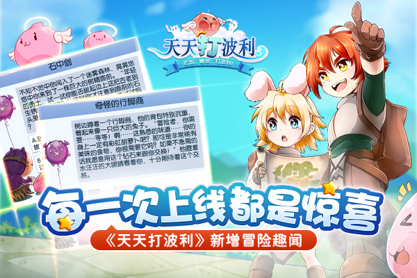 作为一款休闲放置游戏,《天天打波利》主张的是离线睡觉时角色也能照常打怪升级,因此有了“吃饭,睡觉,打波利”这个有趣的口号。那么冒险者们有没有想过:当你关掉游戏睡觉后,你的角色在充满挑战与冒险的卢恩大陆独自旅行时,又会发生什么奇遇吗?卢恩大陆有奇闻广袤的卢恩大陆,爱与勇气的冒险在这里展开。当路过普隆德拉郊外时,你可能会在路边的树下发现一个长得很像兔子的奇怪行脚商。它能嗅到你身上彩虹胡萝卜的气味,并企图用一些小玩意儿与你交换。你会选择帮助他吗?听说英灵殿已经对人类勇士开放,女武神瓦尔基里时常来到人间选拔勇者。终于有一天你看了一个她身披战甲骑着白马掠过天空。你赶紧追上去,却发现她丝毫没有注意到你。你可能还不符合她的勇士标准哦……而关于游戏来源已久的“四大”的传说你知道吗?当蓝疯兔、大脚熊、蜂兵和吸血蝙蝠一起出现时,冒险者们会被它们一起睡眠、冰冻、石化、震荡个遍……惊喜与代入感奇遇事件的触发条件非常自由,不论是在线推图挑战boss还是离线挂机,都有可能触发。触发事件后,根据事件的不同冒险者还将获得不同的奖励。而在一些奇遇里,冒险者可能还将面临小小的选择,不同的选择也将带来不同的结果和惊喜。《天天打波利》虽然是一款休闲挂机游戏,但游戏世界观来源于北欧神话背景的仙境传说RO,因此游戏也在尽量还原这些设定。很多囿于挂机这个核心玩法无法实现的设定,现在都能通过奇遇事件来交代清楚了。除了常规奇遇外,还有一些小彩蛋小故事在其中。比如说游戏里能帮助冒险者解锁群控技能的“四大”宠物,也会通过奇遇暗示来告知玩家。当然,这其中还有一些向经典致敬的奇遇事件,就作为小彩蛋交给玩家自己去发现了。希望奇遇事件这样的细节玩法能增强玩家的观代入感,同时也能给大家在冒险世界的旅程带来一些小乐趣小惊喜。