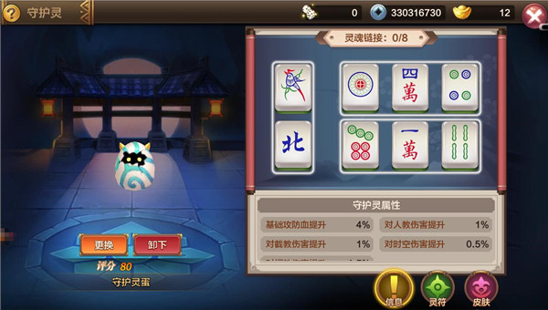 在《封神召唤师》手游中,玩家们不仅可以指挥太上老君、少年黑白无常、姜子牙、杨戬等等颇具道行的仙家神将破阵杀敌,其实还有一位可爱的小家伙时时刻刻的守护在你的身边,帮你度过重重难关。这就是《封神召唤师》独特的守护灵系统。独特的守护灵玩法等你开启当召唤师通过自己的努力修行达到58级的时候,就代表着你拥有了开启守护灵系统的能力!通过元宝商店即可购买专属于自己的守护灵,守护灵的初始状态为一只可爱的守护灵蛋,需要玩家用心慢慢培养。《封神召唤师》独特的守护灵系统带来强大能力提升同时 打造百变个性造型每只守护灵均有8个灵符位,共分为抗阐教、抗截教、抗人教、抗时空四类。当灵符组合满足特定条件将会获得灵魂链接加成。灵魂链接分为:对子、顺子、刻子、杠、清一色,每种链接对应属性加成不同。根据灵符所处于的组合,守护灵的外观、品质、图标和名称也将会发生一定的改变!当灵符组合满足特定条件将会获得灵魂链接加成强大的灵魂链接属性一览对子:当两张灵符区域中灵符相同时,则激活对子加成。激活后召唤师可获得基础攻防血+2%以及对应系伤害减免+2%。顺子:当三张灵符区域灵符花色相同且顺序相连时,则激活顺子加成。激活后召唤师可获得基础攻防血+2%以及对应系伤害减免+2%。刻子:当三张灵符区域灵符相同时,则激活刻子加成。激活后召唤师可获得基础攻防血+4%以及对应系伤害减免+4%。杠:当横排四张灵符相同时,则激活杠加成。激活后召唤师可获得基础攻防血+9%以及对应系伤害减免+6%。清一色(字一色):当八张灵符全部激活且花色相同,则激活清一色(字一色)加成。激活后召唤师可获得对应系伤害加成+8%以及对应系伤害减免+8%。更多好玩的手游尽在逗游!关于《封神召唤师》国风二次元手游《封神召唤师》,为玩家带来三维无缝全景大世界下的热血战斗!《封神召唤师》取材于经典神话题材“封神演义”,并融入东方传统文化中的“符咒”概念,玩家可以自由设定咒文,瞬时召唤名耀古今的封神神将,亲手布局战斗,主导神将进攻。神将的性格魅力随设定而异,与玩家的羁绊将和跌宕起伏的剧情密切相关。游戏与最强国漫《狐妖小红娘》达成强强联动,超人气主角“涂山苏苏”穿越而来展开妙趣横生的冒险。超大主城畅行无阻,24小时跨服语音畅聊等必玩特色,带你率先进击全景联动的手游时代!