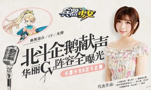 由成都简乐互动打造的超次元美少女3D手游《兵器少女》正式宣布,将与国内最知名配音社团——北斗企鹅工作室达成合作,北斗企鹅旗下众多知名声优将担任《兵器少女》配音!C小调、幽舞越山、新月冰冰、叶知秋等超人气CV纷纷献声,让玩家享受一场来自声音的盛宴。北斗企鹅献声 大咖级CV阵容声优对于一款二次元游戏来说是一个极其重要的组成部分,配音不但推动着剧情的发展,也为玩家渲染身临其境的游戏氛围。《兵器少女》让玩家最为期待的地方之一,莫过于豪华的声优阵容了!相信在北斗企鹅众多大咖级声优的演绎下,《兵器少女》的每一位兵器娘都将赋予灵动鲜活的个性与生命。在目前的游戏版本中,C小调、幽舞越山、新月冰冰、叶知秋、沈念如、月夜桥等超人气CV的声音已经实装语音,在未来的后续版本,还会有更多的知名CV出现!C小调——《兵器少女》配音角色:美雪C小调不仅曾为《你的名字》三叶、《全职高手》苏沐橙两位女神级角色献声,还曾塑造过《哆啦A梦 新大雄的日本诞生》静香以及《火影忍者剧场版 博人传》佐良娜、《疯狂动物城》Fru Fru等经典形象。本次演绎行动队长——美雪这一角色,将带领一众兵器娘为爱而战!幽舞越山——《兵器少女》配音角色:米娜幽舞越山不但声线清甜温柔型,还能能完美演绎活泼正太等角色,曾塑造了《火影忍者:博人传》漩涡向日葵,《那年那兔那些事儿》护士兔、巴巴羊,《轩辕剑外传:穹之扉》阿奇等。叶知秋——《兵器少女》配音角色:席琳、希尔声线甜美活泼富有变化,能驾驭不同性格特征的女性角色,在《兵器少女》中分饰两位兵器娘会为我们带来哪些惊喜呢?代表作有《宇宙警探》其方美铃,《女生宿舍日常》、《从前有座灵剑山》等阎么么——《兵器少女》配音角色:维多利亚阎么么声线最大的特点就是元气有活力,并且治愈力十足。在她治愈的声音背后是有着无穷变换的可能性的,这也是她所配过的角色能被演绎得惟妙惟肖的缘故。代表作:《从前有座灵剑山》琉璃仙,《十万个冷笑话》女老师和鸡精。新月冰冰——《兵器少女》配音角色:林可可新月冰冰在《兵器少女》中将演绎的角色是中国少女林可可,很萌的很萌的冰爷此次会有怎样的发挥呢?此外她还曾塑造了《神契》小希,《尸兄》小鹿,《十万个冷笑话》右袋儿、木吒等众多经典角色。李兰陵——《兵器少女》配音角色:男主角最近热映的动画电影《大护法》不知道各位小伙伴看过没有,里面的小姜就是李兰陵啦!《兵器少女》中当然也不仅仅只有女声,也有我们小哥哥的声音!代表作有《大护法》小姜、《灵契》杨敬华、《镇魂街》亡灵、《十万个冷笑话》人鱼王子。在世界尽头的我和你,与华丽丽的CV大咖们一起在“最声动”的次元世界为爱而战吧!更多精彩敬请关注《兵器少女》官网和官方微博微信!关于《兵器少女》:《兵器少女》是由简乐互动匠心打造的超次元美少女3D回合手游,游戏以轻科幻未来世界为背景,将刀剑枪炮幻化为人形武器,组成上百位风格迥异的“兵器少女”。丰富刺激的冒险剧情,实时弹幕吐槽互动,精致画风搭配华丽特效,近百款高颜值人形兵器,结合萌娘养成与热血战斗为一体,让玩家完美体验科幻次元的战斗激情!
