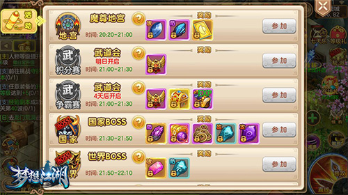 一壶清酒会天下,百派群儒论豪侠!《梦想江湖》首届“武道会”正如火如荼地进行,今晚的第二轮积分赛将从万千群侠中,决出地表最强十六强选手,入选周六的争霸赛,产生历史第一任至尊“武圣”!武道会参赛条件与规则用数字说话五十最低参赛等级50级是武道会给所有玩家设置的门槛,达到这个条件并不难,通常开服第一天即可实现。三每届武道会有三场比赛,周二、周四21:00-21:30进行积分赛,积分前十六的玩家入选周六21:00-21:30的争霸赛,逐级淘汰,战到最后,方可获得至尊“武圣”的称号。十每场积分赛获胜得10分,失败不扣分,周二、周四每天前10场可以获得荣誉,胜利和失利分别有200和100荣誉。一每届争霸赛只有一个“武圣”名额,经过1V1紧张激烈的淘汰竞技杀出一个冠军,并永久记录在历届“武圣”榜上。无限每轮争霸赛的准备阶段,每个玩家都可以对下轮比赛的每个参赛小组投注,总投注额是一个无限大的数字。《梦想江湖》首次在游戏中引入武道会积分争霸赛制,全新的玩法和对战方式,使1V1的战场局势瞬息万变,十六强命运难料。关注《梦想江湖》手游,第一时间获得最新战报,共同见证首位“武圣”的诞生!关于《梦想江湖》万家游戏连服国战武侠手游《梦想江湖》,以动荡年代为背景,讲述一场乱世江湖的恩怨情仇。连服大地图聚集天下英豪,同服联合,对抗敌服,连服国战,决出天下霸主!青春武侠风暴席卷江湖,结拜好友快乐游戏,盛世情缘为红颜!战骑、灵宠、法器、神兵、神羽等丰富的武林高手成长途径,炫酷时装彰显尊贵身份,赋予每个侠客独特的个性。