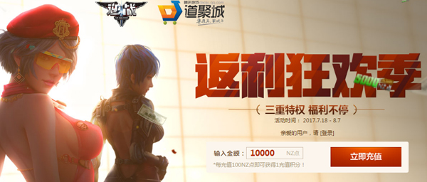 《逆战》(简称:NZ)特别打造的返利狂欢季正在火爆进行中,首充特权、专享购物券返利、幸运摇摇乐三重特权福利不停。不仅如此,玩家参与正在同步进行的未来战士角色礼包预购活动,可同时参与返利狂欢季,让福利喜上加喜!返利狂欢季【唯你尊享 狂欢季首充特权3选1】迎《逆战》五周年全民狂欢,即日起至8月7日游戏重磅推出了返利狂欢季。在活动期间,玩家只要保持游戏在线时累计充值达到或超过1000NZ点(价值10Q币)即可直接选择首充特权之一,特权包括开启100%必得2000NZ点购物券(7天),或者是40%的几率获得5000NZ点购物券(7天),以及20%的几率获得10000NZ点购物券(7天)。每个QQ仅限参与活动一次,三个首充特权可任选其一,拼的是手气,玩的就是心跳!在活动页面的幸运玩家中,分秒刷新着的都是在活动中顺利拿到了成千上万NZ点购物券的幸运玩家。首充特权3选1【专享购物券返利 幸运由你来摇】《逆战》返利狂欢季第二重惊喜就是专享购物券返利了,只要在活动期间消耗充值获得的活动积分,即可兑换专属返利兑换券,比如500积分可兑换10000NZ点购物券(7天),100积分可兑换2000NZ点购物券(7天)等。值得一提的是,玩家参与目前也在火热进行中的未来战士角色包预购活动,在享受到预购活动优惠的同时,同样可以享受到返利狂欢季的专享购物券返利。专享购物券返利除此之外,玩家也可以将活动积分用于摇摇乐玩法中。奖品池中的奖励包括了500、1000、5000、10000乃至15000NZ点购物券,以及重装上阵包(200天),复活币*100和活动页面特权3选1*1,每次开启摇摇乐即可随机获得一个道具栏中的奖品。不过再次开启将不会获得已摇到的内容,因此玩家只要参与8次,100%获得所有奖品!幸运摇摇乐《逆战》返利狂欢季现已盛大启幕,你充值消费,我返利狂欢,海量NZ点购物券送送送!
