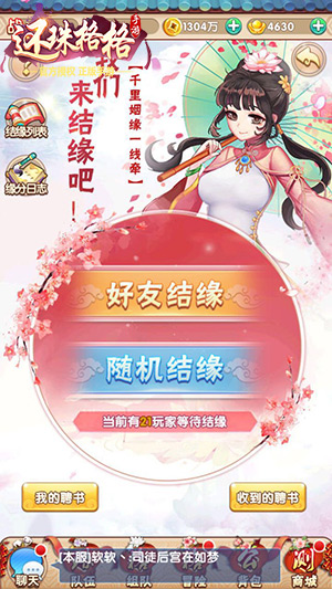 山无棱,天地合,乃敢与君绝,《还珠格格》正版手游现已震撼公测!同时新增随机结缘玩法浪漫上线,小编相信虽然不少玩家已经在游戏中寻找到了真爱,但是还未结缘的玩家也不在少数,而相信通过这一次上线的随机结缘玩法,大家用不了多久都能在《还珠格格》手游中迎来幸福生活。【完善聘书信息】“我的聘书”是随机结缘玩法的关键,玩家可以在聘书上编辑爱好、留言板、性别、年龄、生日、地区和上传照片,不要小瞧这些信息,这可玩家能否脱单的重要条件,特别是上传照片的选择,一张帅气的照片胜过千言万语,能为聘书大大加分。一份高质量的聘书才能吸引佳人眼球并留下完美印象,说不定还会有美女玩家前来投怀送抱哦。【随机缘分匹配】完善聘书之后,点击随机结缘按钮便能查看到随机匹配到的玩家资料,如果想要进一步缩小结缘对象范围的玩家可以选择结缘筛选,快速搜索出自己感兴趣的玩家。倘若没有遇到心仪对象也不用着急,还珠月老可是为大家准备了好几批推荐名单哦,帮助玩家轻轻松松解决终身大事。要是遇到心仪对象可不要害羞,抓住这个难得可贵的机会赶紧下聘书吧!只需消耗100元宝的中介费说不定就能抱得佳人归。如果玩家对自己不是那么自信,可以进行私聊让对方慢慢了解自己,通过感情的升温成功添加女神为好友,再下聘书也是一个较为妥善的做法。【查看收到的聘书】高质量的聘书不止能够增加表白成功几率,同时还有吸引到其他玩家向你表白哦。玩家可以在“收到的聘书”中查看收到的每条聘书的简要信息,如果遇见了适合的对象点击他的单条信息便能查看到详细信息,之后通过私聊进一步了解对方,期间还能添加好友组队进行刷本推图,感情的培养进度与结缘的成功与否有着密不可分的关系。千里姻缘一线牵,《还珠格格》手游随机结缘玩法已成功帮助众多玩家结缘佳人,觅得良缘,小编认为收获幸福其实很简单,只要抓住缘分,坦诚相待,一定能够找到自己钟意的另一半。