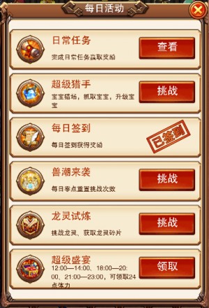 生活,在日常繁杂琐碎的事里继续;生命,在循环往复的日子里起伏。有那么一种力量,就隐藏在日常的琐碎事之中,乐趣《不服小天王》每天必做的日常任务,就是带给你力量的源泉。在乐趣《不服小天王》这个二次元世界中生活,除了不断击杀怪物之外,我们势必会参与一些日常活动来提升自己的实力,而你进行的一些操作可能就符合日常任务中的要求。每天系统会自动刷新出三项日常任务,内容完全随机,各不相同,完成任务的难度也是高低起伏。日常任务内容包含游戏各个方面,诸如升级圣物、守护圣物、击败多少怪物、获得任意龙灵碎片等等。每完成一个日常任务都会获得相应的奖励,或给予离线金币,或给予钻石,或给予BUFF,也是不尽相同。每当你完成三个任务,就会激活力量源泉属性,获得战斗力加成。如果觉得完成难度太大,可以试试用钻石刷新哦。小贴士:每天只有两次刷新机会,获得力量源泉buff之后千万别轮回哦,要不然力量源泉会被重置的。《不服小天王》是一款挂机冒险游戏,精美的游戏画面、炫酷流畅的人物技能、彻底解放双手,专为懒人玩家打造,让你一天24小时不间断的升级,一起来为了女神而战斗吧!天梯排位至关重要,无数的勇士在这里诞生,释放着心中对胜利的渴望,仰天怒吼吧!——我不服!