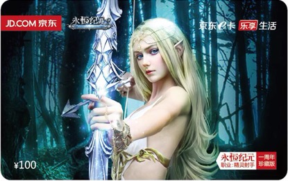 距离《永恒纪元》7.7周年庆全新资料片更新,仅剩几天时间,线上大狂欢模式已准备开启:新职业龙骑士、新功能语音直播、新玩法4V4竞技还有亿万红包雨等着你。当然,除了线上狂欢,在周年庆礼品上也陆续有惊喜,为了带给玩家们更多福利,为了让玩家们生活购物和游戏两不误,《永恒纪元》携手京东推出珍藏、限量、定制周年庆京东E卡!此卡不仅能在京东直接消费,更能获得《永恒纪元》游戏礼包一份。此次《永恒纪元》携手京东打造的E卡为周年庆游戏限量珍藏主题卡,以《永恒纪元》最吸引人的精灵姐姐Savana blade 和玩家们最期待的新职业龙骑士作为主题设计版面,凸显了《永恒纪元》高品质的画风、展现出了游戏特有的魅力,同时也预示着“全新纪元 全面升级”的到来。超值实惠!《永恒纪元》 周年庆游戏限量珍藏主题卡,不仅让你生活购物和游戏两不误,首先在购买东西时直接抵用现金,并且还能获得《永恒纪元》定制周年庆礼包,生命神兵石、攻击神兵石、坐骑丹、符文精华宝箱、2倍经验药水都可以通过购买京东E卡免费获得!如何获得如此具有特别价值的礼品呢?玩家朋友们可以参加我们上海站周年庆活动和留意平时官方微信论坛活动获得,当然还有一种快速获得方式:登录京东,搜索“永恒纪元”你就可以购买了。接下来,《永恒纪元》会更多更别具一格特别的礼品贡献给玩家们。