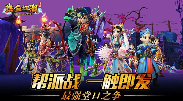《热血江湖手游》全新帮派战玩法即将在下周的新版本中上线,全服各大帮派将共同争夺至尊霸主之位,一场前所未有的腥风血雨即将拉开序幕!为了参与帮派战之争,所有帮派还将划分为多个堂口,各堂口将代表自己的帮派出战,最终的荣耀和奖励将属于真正的强者。分设堂口 战力凝聚随着江湖中的各大帮派日益强大,帮众也越来越多。在帮派战来临之际,各帮想要继续发展壮大,就必须要分为多个堂口治理,才能强化战斗力,凝聚旗下兄弟!而随着堂口的建立,帮派之中会诞生多位堂主,众多强者也必将为了各堂主之位展开一番激烈争夺。堂主上任后可以邀请帮派中最为亲密的兄弟加入堂口,让彼此关系更亲近,在战场默契配合发挥最强战力。跨服之争 至尊荣耀江湖中从来都不缺少恩怨情仇,帮派之间的厮杀争斗更是家常便饭,前有帮派夺旗战占领世界地图,现有跨服帮派战角逐至尊荣耀。《热血江湖手游》帮派战将在全服所有帮派之间展开,各帮派将以堂口为单位出战,因此除了本区的高手,大家还会遭遇其他区的强敌。帮派战最终将以帮中所有堂口的战绩总和进行积分排名,积分最高的帮派将获得整个江湖的荣耀。全新战场 专属奖励帮派战作为近期江湖中最盛大的活动,自然会有专属的战场和奖励。全新帮派战地图呈正方形,双方阵地对立于两角,中间有三条道路相连,与大家熟悉的MOBA类游戏地图类似。帮派战虽然残酷,但整个场景的风景却是极为优美,保持了游戏清新明亮的风格。奖励方面,帮派战的胜者则会获得专属的坐骑皮肤、称号以及其他超值道具奖励。值得一提的是,新版本中,坐骑也是可以随意更换皮肤了哦,如同角色披风一样。所以这个炫酷的坐骑皮肤是可以使用在任何一个现有的坐骑上!《热血江湖手游》至尊荣耀跨服之争,帮派战一触即发!分设堂口兄弟齐心,全新场景,专属奖励,天下第一帮的名号等待各位帮主前来争夺,你们准备好开战了吗?《热血江湖手游》是由官方唯一正版授权,龙图游戏发行青春武侠MMORPG手游。清新明亮的游戏场景,活泼可爱的人物造型,风趣幽默的游戏剧情,构建出一个轻松愉快的江湖世界。游戏完美复刻端游职业、地图、宠物、武器、宝石等一系列经典内容,更有百套披风时装,让江湖儿女尽显个性风采,丰富的社交玩法成就侠侣情缘,上演盛世古典婚礼羡煞武林。同时,玩家还将体验到正邪转职双线成长的乐趣,自创武功独步江湖的畅爽,野外自由PK的快意恩仇,以及正邪势力跨服对决带来的激情战斗!让我们携手挚友,青春热血,再续江湖!《热血江湖手游》官方微信:热血江湖手游(rxjh-sy)