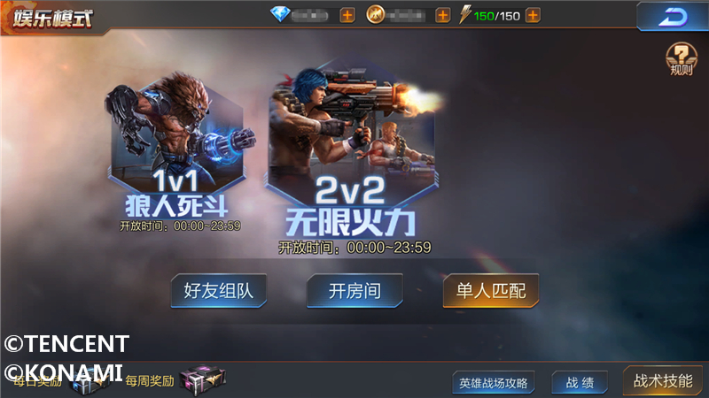 由腾讯联合KONAMI共同研发,正版《魂斗罗:归来》动作射击手游即将重磅更新“全民军团战”版本,诸多全新内容都是玩家期望体验的玩法。今日,《魂斗罗:归来》再次曝光新版本全新玩法,将在PVP系统中新增两大娱乐玩法——1V1狼人死斗和2V2无限火力。两大全新娱乐PK玩法,分别拥有独特的战斗规则,带来的乐趣也是各有不同。1V1狼人死斗 重重机关中的“近身”搏斗《魂斗罗:归来》即将登场的1V1狼人死斗娱乐竞技玩法,将是一场偏向于“近身格斗”的PK对战。在这个模式中,玩家仅可以选择生化狼人·方出战,并且只能使用爆裂拳击这三段式的近身搏斗技能,因此在这个全新竞技场内,将后背留给敌人可是非常危险的事情。当然在这全新的战场上,玩家也可以使用武器进行远程射击,但所有入场的狼人,都只能装备一把特定的主武器进行战斗。全新的1V1狼人死斗玩法,对应的地图为埃及风地图,在这个古老的法老王沉睡的“墓地”中,还有着各种各样的机关陷阱。双方玩家在竞技对抗的同时,不仅需要面临敌人队伍的攻击,更需要注意对机关陷阱进行闪避,因为每一次的损血,对敌人来说都会是一次收获,都更有可能让敌方队伍获得最终的胜利。巧妙利用重重机关与险要的地形,能让战士在这一场生死对决中胜算大增。2V2无限火力 技能冷却缩短“火力全开”《魂斗罗:归来》全新版本即将增加的2V2无限火力,是能让最强战士们享受到更激情战斗的全新竞技玩法,战场上的“红蓝阵营”都是2人抱团一起作战。在全新“无限火力”玩法中,角色技能冷却时间将大幅减少,这也就意味着每个英雄都可以拥有更加凶猛的火力输出,在战场上选择不同的英雄带来的竞技体验绝对不一样。在2V2无限火力中,每一个出场战士都仅可使用特定主武器作战,但相对而言,英雄的策略搭配才是更好的取胜之道,毕竟这是2人的团队作战,互相进行配合才能更好地击杀对手。比如擅长“召唤”的露西亚·零,能更快召唤战宠,对敌人进行更全面的封锁。再如擅长赏金猎人·凯特琳,分裂弹本就让人很难闪避,更快释放分裂弹,带来的密集弹幕让残血对手根本无路可逃。两者组合起来,一人主封锁控场,一人主火力输出。当然所有英雄的作战方式都不一样,也能有各种不同的组合出现,想要在无限火力中突出重围,还得看个人的作战技巧能力与团队的协作配合能力。《魂斗罗:归来》全新版本即将开启,一大波全新内容将重磅来袭,全新娱乐玩法1V1狼人死斗与2V2无限火力,将让最强战士们享受到不一样的竞技乐趣!关于《魂斗罗:归来》正统续作,革新射击!《魂斗罗:归来》是由腾讯联合KONAMI共同研发,正版《魂斗罗:归来》动作射击手游。丰富弹幕、武器带你挑战万变战场;还原经典魂斗罗玩法与兄弟一起挑战BOSS;创新添加PVP竞技,1V1英雄战场和3V3据点对战;延续经典双人模式,全民组队火力全开!精英集结,王者归来,让我们一起战斗,并肩打通关!