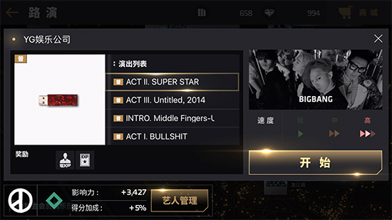 老板来一张《权志龙》!时隔四年才发新专的G-Dragon用自己的名字《权志龙》命名新专,并收录了同名歌曲《权志龙》及《SUPER STAR》、《神曲》、《BULLSHIT》、《Middle Fingers-up》光看名字就屌炸天的歌曲。YG娱乐官方出品,BIGBANG音游《节奏大爆炸》也同步收录了《权志龙》新专新歌,除了用耳朵听,也可以用指尖玩味G-Dragon的旷世神曲哦。【老板,来一张《权志龙》!】《权志龙》新专四首新歌《权志龙》、《SUPER STAR》、《神曲》、《BULLSHIT》已经在游戏内的“铂金会员俱乐部”更新。只要是游戏铂金会员就可以免费畅玩,通关歌曲后还能解锁到练习室里,想听歌随时随地弹奏一把!【挑战GD新歌,送GD签名专辑】参与方式:- 挑战GD新歌并拍视频发到自己的新浪微博,再带上视频秒拍链接转发@节奏大爆炸 官方微博;- 记得带上话题#节奏大爆炸##权志龙携同名新专回归#评奖方式:- 官博将根据视频质量评选出“最佳创意奖”,送GD签名专辑;- 还会选5位“最佳表现奖”送游戏内GD新专形象金卡1张;- 最后从所有参加活动的家人中抽3位送GD专辑;活动时间:2017年6月30日14:00-2017年7月6日18:00【关于《节奏大爆炸》】《节奏大爆炸》(英文名:BeatEVO YG)是韩国YG娱乐出品,心动网络发行的一款音乐节奏手游。你们所有喜欢的YG艺人与歌曲都会在游戏中出现,包括:GD、T.O.P、胜利、太阳、大声、BIGBANG(包括solo与FEAT)、iKON、WINNER、Epik High、PSY、乐童音乐家、LEE HI、JINUSEAN、BLACKPINK等等。YG唯一正版授权音游,口袋里的Live Show,让音乐看得见,让旋律摸得