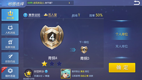真正的王者,永远不会沉迷于普通匹配当中的谈笑风生、超神五杀,因为他们知道,强大的对手只存在于排位赛之中......全新的公平5V5对抗电竞手游《王者召唤》在今天曝光了其特色的“排位赛”玩法,召唤师们,要想登顶荣耀的王者宝座,就来排位赛一决高下吧!作为匹配模式之一一大特色游戏模式,《王者召唤》之中的“排位赛”玩法采用特别匹配规则和方式。“排位赛”玩法设有青铜、白银、黄金、白金、钻石、王者以及最强王者这七大段位,而在排位赛对抗匹配当中,召唤师们将会遭遇和自己段位实力相近的对手,来一场酣畅淋漓的激情5V5对抗!《王者召唤》“排位赛”玩法规则:1.休闲排位需要达到6级开启,竞技排位需要达到白金段位并拥有14个可用英雄开启(包括周免英雄);2.青铜、白银、黄金段位采用休闲模式,没有禁用英雄和论选规则;白金以上段位采用竞技模式,双方各选择禁用2个英雄,然后双方轮流依次选择英雄;3.可以邀请与自己相差小于一个大段位的好友进行排位,王者只能与王者双排;4.排位赛胜利可获得1颗星星,失败则失去1颗星星,青铜段位不会失去星星;5.每场对战可获得时空积分,时空积分满时等同于一颗星星;6.根据时空积分规则设有段位保护机制。而《王者召唤》当中的“排位赛”玩法,还设有“名人堂”系统,王者段位排名前50的召唤师可晋级至最强王者段位,同时登入名人堂,最强王者段位每天凌晨刷新一次。毫无疑问,“名人堂”的席位才代表着召唤师们可以获得的至高荣耀!《王者召唤》的“排位赛”玩法,以赛季为单位进行,各赛季都为召唤师们准备了丰厚的奖励。在各赛季达到相应段位的召唤师,都能够获得大量的段位奖励,包括海量金币、钻石以及神秘皮肤。赛季段位排名越高,对应的段位奖励自然就越好。此外,各赛季还为达到指定段位的所有召唤师准备了一套皮肤作为额外的奖励!《王者召唤》是一款以科幻竞技为题材的MOBA手游,坚定的MOBA热爱者,不缩水的5V5大地图,坚持平衡的游戏规则,无道具改变属性,无锁定的操作模式。游戏保留端游MOBA的精髓,队伍配置、节奏掌控、视野控制、团战进退等MOBA的乐趣没有减弱,