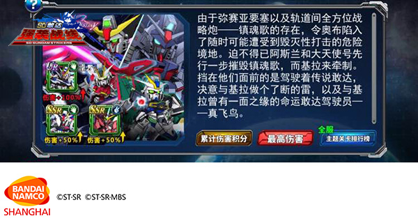 《SD敢达强袭战线》是以超人气动漫《机动战士敢达》为主题,万代南梦宫倾力打造的3D动作手游。在敢达系列作品中,SEED系列一直以来是最具有人气的作品之一,而作为在《机动战士敢达SEED DESTINY》中所登场的机体与角色,诸如强袭自由敢达、无限正义敢达以及它们的驾驶者基拉·大和及阿斯兰·萨拉等也都是颇具人气的机体和角色。在《SD敢达强袭战线》之前的版本中,还曾经推出过名为“镇魂歌”主题副本,作为SEED的主题副本,“镇魂歌”深受玩家们所喜欢,而如今,它将重新归来,在更新后,这一热门主题副本将重新上线!由于弥赛亚要塞以及轨道间全方位战略炮——镇魂歌的存在,令奥布陷入了随时可能遭受到毁灭性打击的危险境地。迫不得已阿斯兰和大天使号先行一步摧毁镇魂歌,而基拉来牵制。挡在他们面前的是驾驶着传说敢达,决意与基拉做个了断的雷,以及与基拉曾有一面之缘的命运敢达驾驶员——真飞鸟。快来游戏中亲自体验一下这惊心动魄的精彩剧本吧!《SD敢达强袭战线》是以超人气动漫《机动战士敢达》为主题,万代南梦宫倾力打造的3D动作手游,传承自主机游戏的质感和操作体验。携全系列人气机体、美女机师疾驰而来!游戏好玩易上手,融入了战队养成、羁绊搭配、远征模式、编年史副本、大规模ACE战等丰富玩法,让你快速融入敢达世界享受战斗的快感!