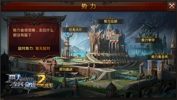 《全民奇迹MU》4.0新版本的上线在即,即将登场的势力争霸系统,让我们终于有了一探神圣教团、自由同盟、织梦协会这三大顶级势力地图的机会。水晶采集,繁荣度之争说到势力地图,自然就不得不提及势力地图中最主要的玩法——水晶采集。在《全民奇迹MU》4.0新版本的势力地图中,玩家们可以采集本方资源水晶,也可以盗采其他势力的资源水晶,亦或是系统自动采集资源水晶,均会增长本方势力的繁荣度;繁荣度不仅会设立排行榜,同时也会影响势力商城中的每日限购次数。除此之外,在资源水晶附近,还会有势力巡逻守卫看守,势力巡逻守卫只会攻击其他势力角色,且会在势力频道中发布发现敌对势力的信息;玩家们在遭遇势力巡逻守卫之后,可以选择正面击杀,击杀后需要一段时间才会重新刷新。势力BOSS,屠魔勇士之名在资源水晶和势力巡逻守卫之外,势力BOSS才是《全民奇迹MU》4.0新版本三大势力在势力地图中争抢的重头戏。在三大势力的三张势力地图中,势力BOSS将于每天同一时间同时刷新;凡对势力BOSS造成伤害的玩家,在BOSS死亡后可按伤害量获得势力贡献与势力军衔,并增加本势力繁荣度。值得一提的是,在对势力BOSS的击杀过程中,个人伤害排名第一的角色,还将获得“屠魔勇士”的特殊称号。采水晶,抢BOSS,提高势力繁荣度,让势力的荣光洒满奇迹大陆。《全民奇迹MU》4.0新版本势力争霸即将开战,神圣教团、自由同盟、织梦协会三大顶级势力交锋一触即发,作为MU王国勇士的你,是否也已经有心仪的势力了呢。
