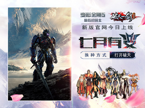 《破天一剑》是一款由端游原版人马打造的经典国民IP好玩的手机网游,今日,《破天一剑》手游影游合作官网正式上线,一起来看看吧!携手再创新经典 换个方式打开破天《破天一剑》手游复刻十五年经典,携手变形金刚系列电影十周年新片——《变形金刚5》,首度实现品牌跨界。从动漫到电影,变形金刚迎来了自己空前繁荣的新时代。童年的记忆被重新唤醒,无数的粉丝蜂拥而至。从端游到手游,《破天一剑》也伴随着玩家们来到了新的世界。换个方式打开破天,不一样的体验,一样的江湖!万张影券贺开测 兄弟观影热血重燃此次《破天一剑》手游携手《变形金刚5》,旨为玩家带来一场影游盛宴。万张电影券免费发放,只要关注《破天一剑》手游官方网站,参与相关活动就有机会获得!手游预约抢先开启,观影券、周边茶具套装、京东卡等等大奖倾情奉送。观变形金刚勇者之战,感受火热战斗场面,唤醒热血PK的壮志豪情!与兄弟一同观影,来一次别开生面的线下“面基”吧。七月有变,换个方式打开破天!《破天一剑》手游官网今日正式上线,持续关注即可抢万张变5观影券,手游预约还有机会抽取大奖。据悉《破天一剑》手游已增添多种全新玩法,期待公测时为您带来全新江湖世界。