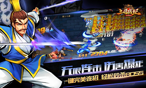 IGS正版动作连击卡牌手游《三国战纪群雄逐鹿》重现街机经典,带玩家穿越时光,回归年少,再次体验一起闯关、热血战斗的激情。《三国战纪》街机极具挑战性的连击玩法,将在手游中获得重现,轻松打出999HIT,秒杀BOSS无压力!《三国战纪群雄逐鹿》无限连击玩法【一键无限连击,告别复杂操作】《三国战纪群雄逐鹿》手游告别街机复杂的摇杆+按键操作模式,玩家只需一根手指,根据光圈节奏点击屏幕,就可以实现街机中复杂的连击、合击,体验堪比街机中“999HIT”连击的爽快战斗。而游戏必杀技操作同样简单易上手,只需点击武将头像上滑即可完成。根据光圈提示,打出perfect完美连击【连击伤害爆炸,轻松秒杀BOSS】《三国战纪群雄逐鹿》手游中的连击战斗不仅极致爽快、节奏感十足,更附带伤害的额外加成。Perfect、Great、Good三种连击,分别对应1.2、1.15、1.1倍数加成,且连击伤害加成还可以随着次数不断累加,最终累计的高额伤害甚至可以秒杀满血BOSS。多段连击,产生爆炸伤害【每日幸运连击,天降元宝惊喜】《三国战纪群雄逐鹿》连击系统除了玩法精彩,情怀值满分外,还暗藏了一份惊喜:系统每日会随机设定一套连击节奏(比如great+perfect+perfect+great+perfect),玩家只要在当日任一一场战斗中打出相同节奏的连击,就可获得惊喜大礼,其中包含丰厚的元宝、纹银和武将经验酒哦!必杀技同样可打出高段连击预约《三国战纪群雄逐鹿》赢官方典藏手办