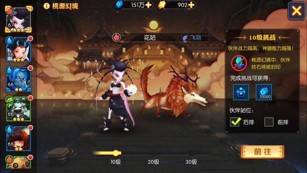 世外仙境水连天,桃源景色醉人间。在《神仙道2》手游中,有一处资源富饶之地,名唤“桃源幻境”。在这里,神兽十方将帮助伙伴共闯幻境,夺取伙伴成长的重要资源。桃源幻境,顾名思义满载花开与梦想,在此处修行定能有事半功倍的效果,助力伙伴早日修成正果。【只拼实力 无阵型不排兵】不同于其他副本,桃源幻境的挑战只能使用参加挑战的伙伴和神兽十方进行战斗,无法再上阵其他伙伴,其他副本中排兵布阵的战术在这里都将无法派上用场。每个伙伴整10级的时候,就可以参加一次桃源幻境的挑战。上阵挑战伙伴以及十方,伙伴的站位有后排及前排之分,一般会选择将伙伴置于后方,毕竟上古神兽十方拥有更强的战力,让十方在前排保护伙伴才是明智之举,除非挑战的伙伴是防御性的肉盾,这种情况可考虑让伙伴放在前排。挑战模式:单个伙伴+神兽十方挑战资格:每个伙伴整10级时可参加一次挑战(如10级、20级、30级等)挑战次数限制:每个等级副本挑战过一次后无法再次进入伙伴站位:前排、后排【十方相助 神力无止境 】上古十方,其星阶、防御力、战斗力均高于挑战伙伴。不过在桃源幻境中,十方的战力受到挑战伙伴的影响,封印的上古神力需要伙伴的配合才能释放。伙伴的战力越高,十方释放出来的战力越强!而在桃源幻境中,伙伴的纹石也将被封印,挑战能否成功,只能凭借伙伴及伙伴能唤起十方多强的战斗力了。在战斗过程中,建议把灵力主要分配给十方,作为群攻以及高资质的神兽定能贡献更高的输出。十方属性:无属性,与其他属性没有互克关系十方等级:与接受挑战的伙伴一致十方战力:伙伴战力越强,神兽能力越强十方战斗类型:群攻【桃源幻境 发家风水宝地】秉天地造化之气,桃源幻境物产富饶。伙伴每次挑战成功将获得相对应的等级成长礼包,如挑战10级将获得伙伴10级成长礼包,以此类推。礼包中含绝技书页、突破丹等升级、进阶的资源,获得的礼包将存放在“背包”中,需要时可进行开启。每个伙伴每次挑战成功都能获得一笔价值不菲的资源奖励,那么收集了越多的伙伴发起挑战也将累计到更多的资源财富。同时,挑战的等级越高获得的奖励也越丰富。如果伙伴在成长过程中缺少资源了,桃源幻境将是获取资源的风水宝地。桃源幻境挑战奖励:伙伴成长礼包。挑战等级越高礼包越丰厚桃源幻境有宝藏,别有趣味在其中。《神仙道2》手游幻境是修行的清幽之地,也是发家致富的好去处,闲暇之时别忘记让伙伴挑战桃源幻境,这笔财富会让你在修仙路上更得心应手!