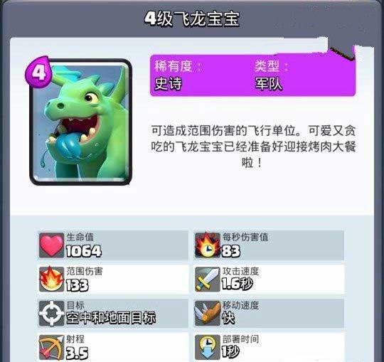 我凭长相卖萌凭什么说我蠢?皇室战争飞龙宝宝卡组搭配!飞龙宝宝是一张4费的史诗卡牌,无论是血量还是输出方面都较为稳定,所以着很不错的搭配效果。在一些卡组中经常能够看到这张卡牌,那么对于这张空战的飞龙宝宝,我们在卡组搭配中要如何正确的使用呢?【飞龙宝宝简介】简介:飞龙宝宝是一张4费的史诗空战卡牌,并且在训练关即可解锁,这张卡的优点在于有着较高的血量,所以生存性是非常不错的,并且攻击形式也是AOE输出,在对抗敌方的人海卡时有着很大的优势。特别是对于亡灵大军这类卡牌更是有着不错的克制能力,飞龙宝宝虽然是一个远程输出的职业,但是射程相对较低的(3.5)并且攻击速度也是达到了1.6秒。而飞龙宝宝的卡组搭配方面,由于飞龙有着非常不错的血量和AOE输出,所以在搭配一些坦克组合时能够起到很好的辅助进攻的能力,帮助他们对抗一些人海防守卡。同时在搭配一些防守反击的组合时也是有着不错的骚扰能力,玩法较为灵活。【坦克卡组搭配】热门搭配:石头人/熔岩猎犬/巨人搭配指南: 飞龙宝宝有着很好的空战AOE输出的能力,所以在一些坦克的卡组搭配中,能够帮助他们较好的清理敌方的一些人海卡牌,特别是对于亡灵大军和亡灵以及骷髅墓碑这类卡牌有着不错的克制能力,当我们打出石头人和熔岩猎犬等坦克进行进攻时,难免会被敌方的建筑拉扯,而我们放在河中间的飞龙能够快速的锁定到这些建筑,从而消耗,并且高血量的飞龙宝宝也不会被敌方的法术斩杀,稳定性较高。【消耗卡组搭配】热门搭配:哥布林飞桶/哥布林投矛手/掘地矿工/吹箭哥布林搭配指南:在消耗卡组的搭配中,飞龙宝宝的可搭配性是较少的,并且和一些防守反击的组合有些类似,利用飞龙宝宝进行防守,在防守后如果血量较高的话。可以很好的吸引敌方的目标,然后打出消耗卡来进行不同程度的输出,特别是搭配哥布林飞桶和矿工的组合是较为常见的。【防守反击卡组搭配】热门搭配:野猪骑士/骷髅召唤/皮卡超人搭配指南:在防守反击的卡组搭配中,飞龙宝宝主要是利用高血量和不错的AOE输出来有效的对抗敌方的一些进攻卡,在利用飞龙宝宝防守后,在搭配其他卡牌来打出一定的组合进攻,而飞龙宝宝的防守反击搭配中,防守卡越多,那么打出的反击也是越强力。特别是搭配飞斧屠夫/骑士和巨石投手这些卡等,在我们这些卡牌防守后搭配野猪和骷髅召唤可以打出有效的反击,而皮卡超人搭配飞龙在防守后,打出的反击更是极具威胁。【飞龙宝宝热门卡组】卡组思路:我们的卡组是一个标准的防守反击组合,同时还具有一定的坦克能力,在组合搭配中,进攻的思路主要为两个方面,一方面是在我们的卡牌防守后,如果防守卡牌的血量较多的话,那么搭配骷髅召唤来打出前后的夹击。而另一个方面则是在皮卡超人防守后,搭配一些AOE卡牌来进行坦克的推进,所以在进攻方面还是相对较为灵活的,并且在我们打出蹦迪的组合进攻时,如果敌方使用人海卡防守,那么直接毒药辅助即可。卡组在防守方面同样非常的灵活,皮卡超人有着非常高的血量和伤害,所以能够很好的对抗敌方的地面肉卡。而飞斧屠夫和飞龙宝宝都是较为灵活的AOE卡牌,特殊情况下搭配飓风法术效果更佳,而小骷髅则是一个拉扯赚费的防守卡。飞龙宝宝是一张非常强力的空战AOE卡牌,这张卡有着不错的血量和输出,所以无论是进攻还是防守都较为稳定,在卡组中也是能够起到非常好的辅助作用。